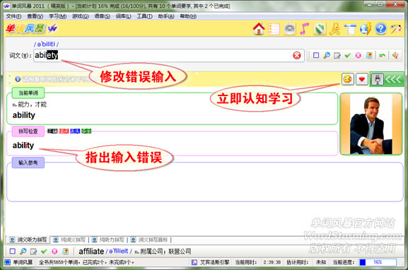 在单词修正的同时可以随时查看输入的单词的参考信息,并进行认知学习: