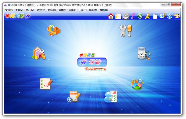 • 单词风暴软件简单易用,画面操作向导化,通过学习向导的使用,您就能立刻开始单词风暴了。学习计划管理、词库导入向导、单词标记助手、统计分析图、MP3导出等工具更能使您的学习如虎添翼,成为您快速记忆的终极武器: