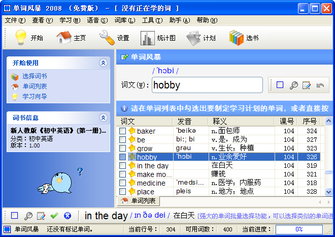 可以利用学习向导完成学习、复习功能,主要的学习方法包括词义风暴和拼写风暴