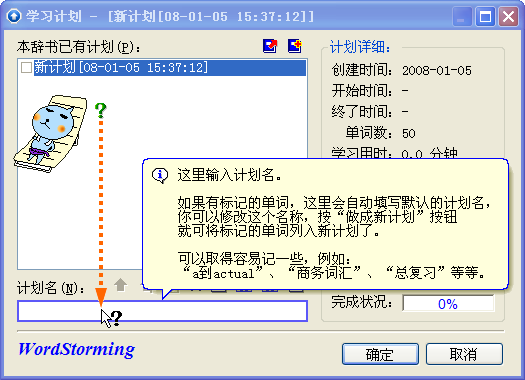 使用风暴助手来获得即时的画面帮助 ![]() ![]() 蓝色精灵、水晶风暴、快乐风暴 您选择哪一位作为您的助手呢? 介绍如何创建用户并登录进入主画面 介绍如何建立用户、标记单词、实施学习计划、使用学习向导…… 单词风暴提供了多种复习方法,使用“艾宾浩斯”遗忘曲线理论、统计分析图、使用学习向导…… 备份数据?很简单吗? 休闲、背单词两不误,单词风暴独创的聊天背单词非常有趣和实用。迷你背单词使用单词滚动条方式在空闲时间学习,随时可以背单词。 介绍如何使用设置和选项,设定外接词典、积分策略…… 注册须知以及软件许可协议。 一、使用风暴助手单词风暴使用了很有特色的帮助系统,通过卡通人物对话来帮助您使用本软件,既有趣又实用。随时按F1键就能显示卡通助手,再次按下F1就能显示画面的帮助了。 漫画书中经常可以看到人物头上弹出一个“气泡”,里面写着说话的内容。风暴助手也是使用这种方式和您“对话”的。 “对话”在显示一定时间后会自动消失,如果要避免它消失,可以单击左下角的蓝色图钉来钉住“对话”。您也可以双击 (或者右键单击)对话来关闭它。“对话”窗口可以拖动到任意地方。 “风暴助手”旁边的问号可以拖动,用它来指向程序中的输入框和按钮,就可以看到这个控件的帮助。这时候,如果将鼠标移动到“对话”上,就能看到蓝色图钉出现,松开鼠标即可钉住。